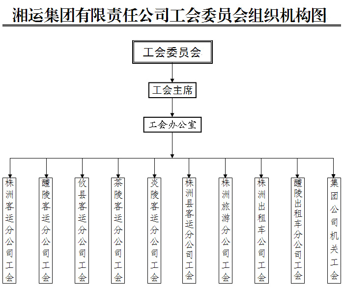 湘運集團有限責任公司系湖南省株洲地區(qū)最具規(guī)模、舉足輕重的專業(yè)化道路運輸龍頭企業(yè),是以運輸產業(yè)為主,房地產開發(fā)、商貿餐飲等為輔的多元化經營的企業(yè)集團。集團公司設工會委員會,下設9個二級工會,現有工會會員1026人,員工入會率達100%。