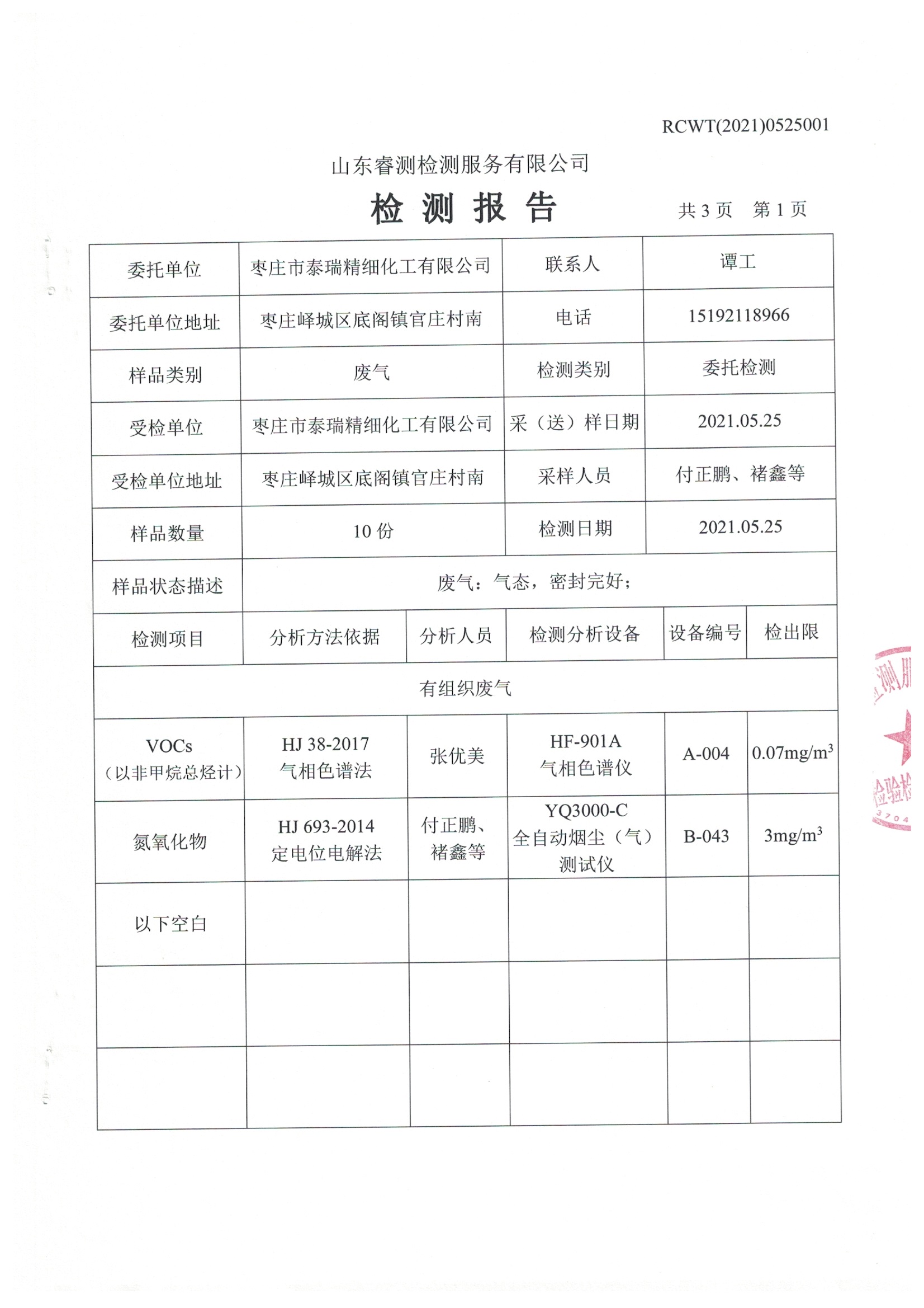 2021年4月份及季度自行檢測報告