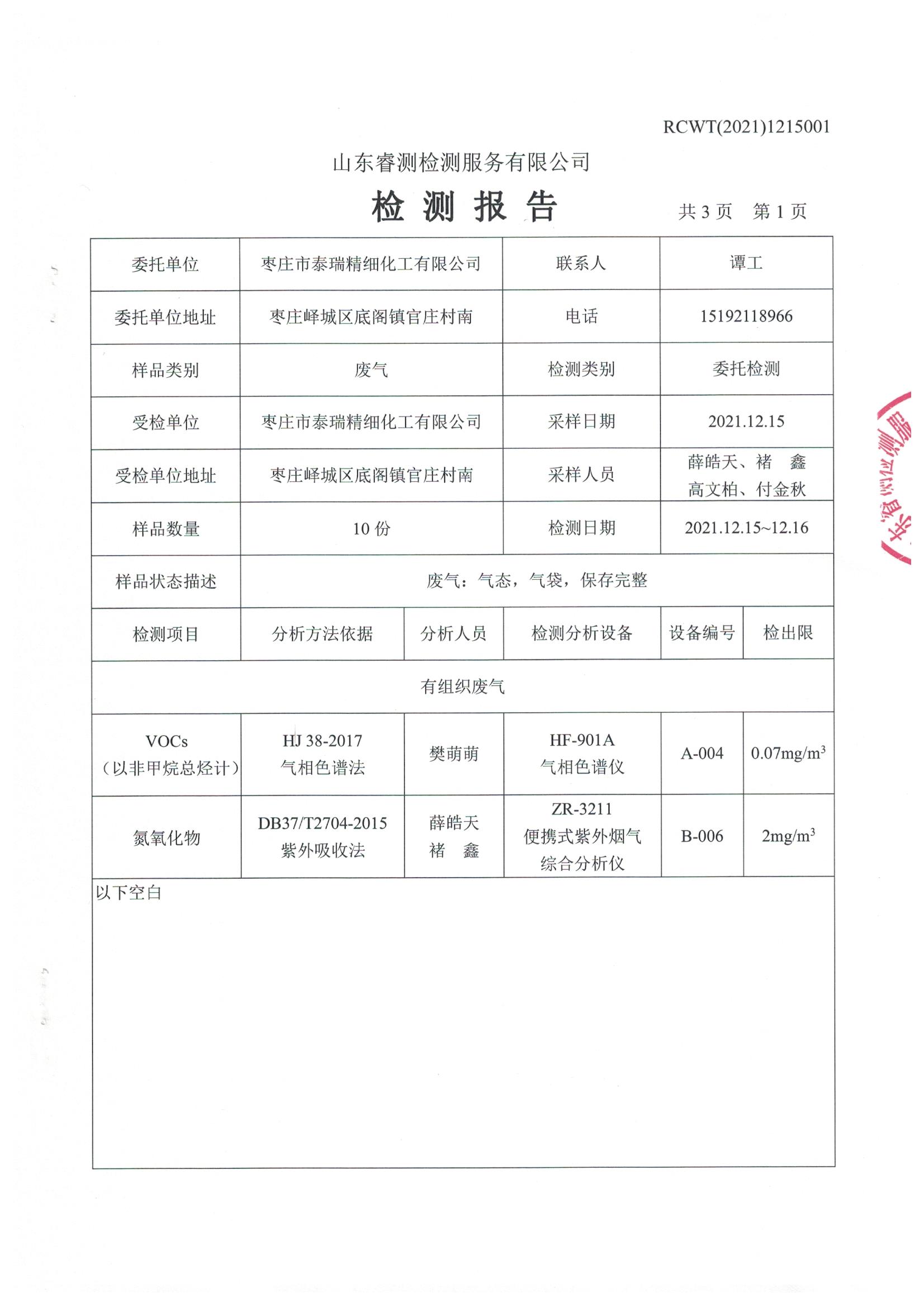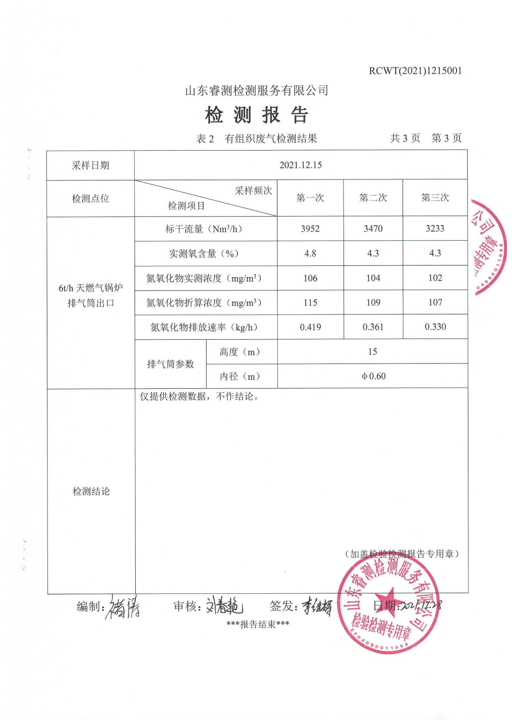 2021年12月份自行檢測報告