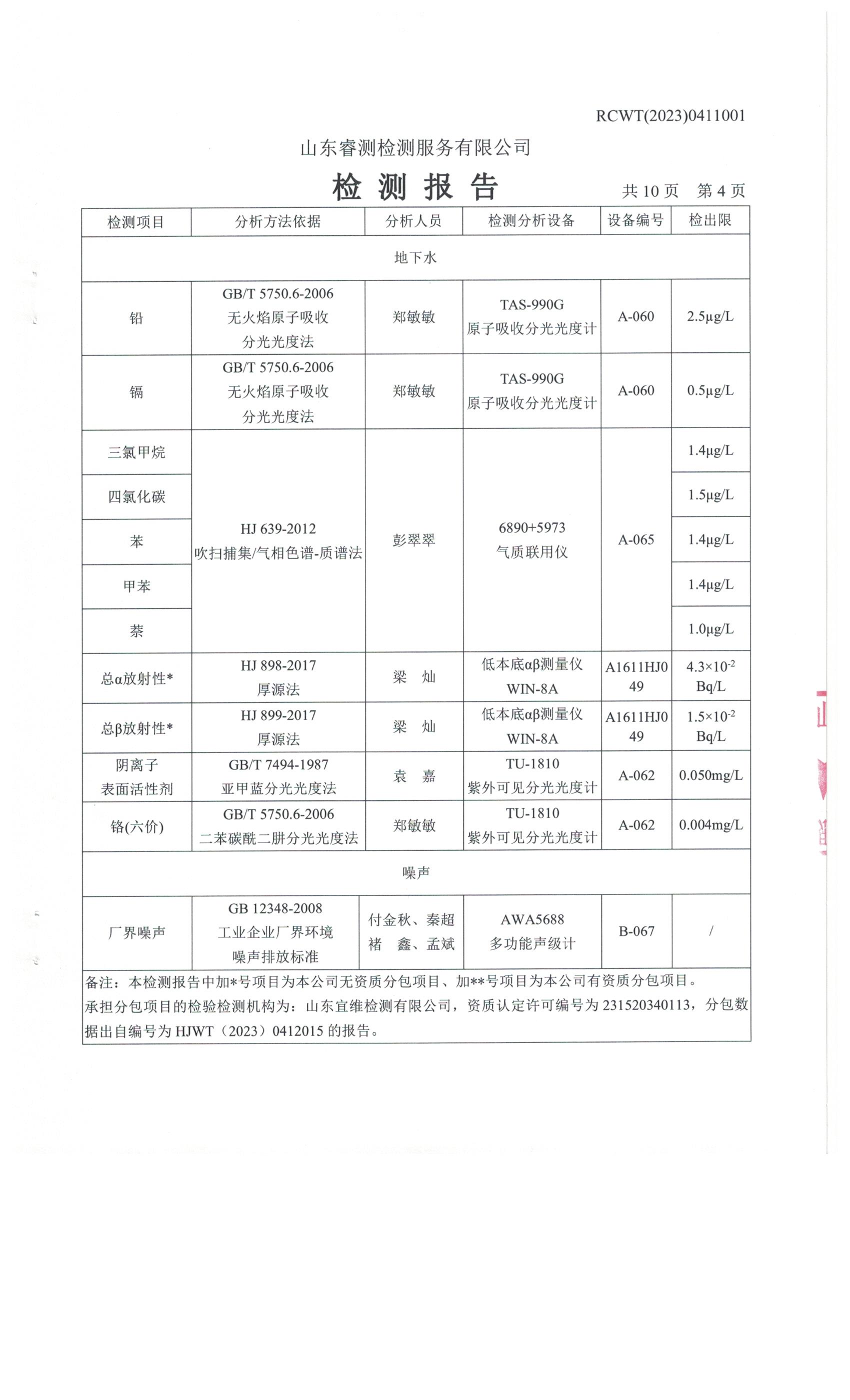 2023年第4季度(10月份)檢測(cè)報(bào)告