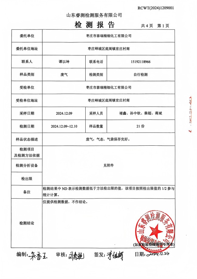 第四季度廢氣、噪音檢測(cè)報(bào)告