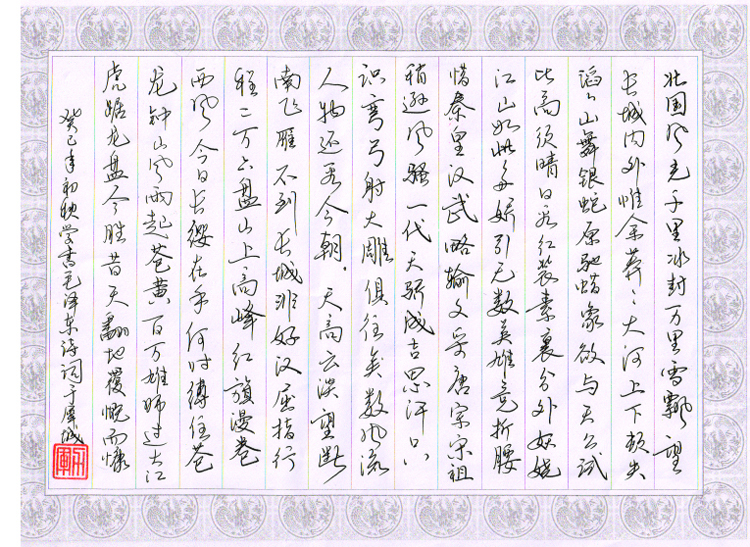 硬筆書法一等獎:行書 《沁園春.雪》(作者:肖力軍)